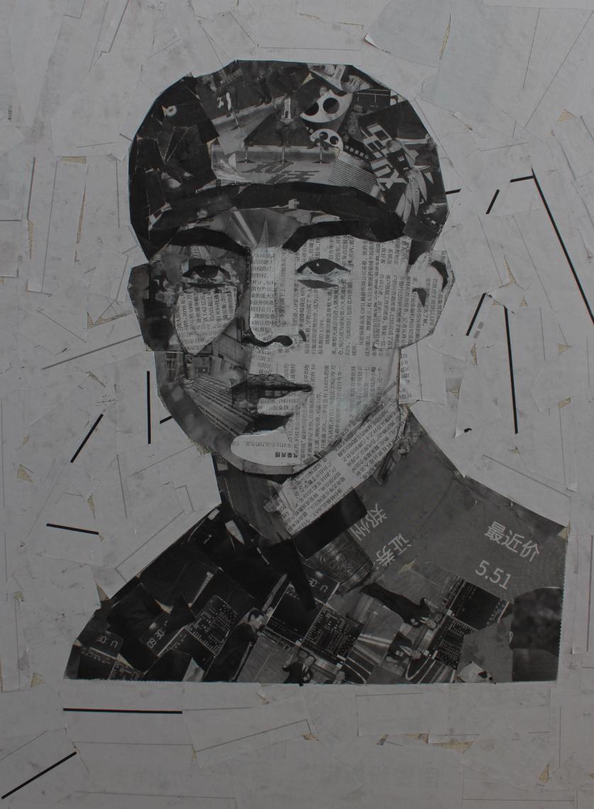 创作材料:材料工具方面,主要以木板,白乳胶,照片,主要以剪纸为主,对照片打乱重组。