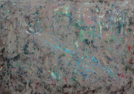 创作阐述:在创作之前我研究了敦煌壁画,很多壁画的并不是同一时期完成的,在经历了时间的冲刷后有些表面的壁画剥落露出了被覆盖的颜色,这些剥落的地方和整幅壁画并不是一体的,但在时间的洗礼下与整幅壁画一起成为了文化遗产。冲撞的色彩象征壁画的生命力;颜料剥落、开裂和翘起的地方是时间赋予壁画的韵味;封层则是凝固,愿时光永固为人类留下这些文化瑰宝!