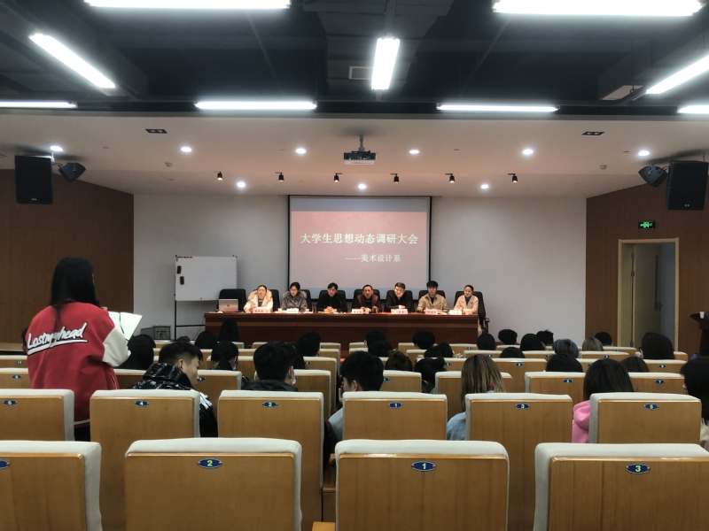 3月19日下午,安徽艺术学院在美术设计楼学术报告厅召开了大学生思想动态调研会。宣传处,总务处,保卫处,团委,学生处以及马院等部门领导参加会议,美术设计系副主任吴晗华主持会议,美术设计系各年级专业学生代表参加调研会。