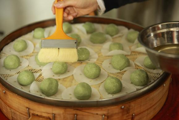 活动分为两个时间段进行。上午十点,美术设计系团总支书记郗文静与同学们在食堂向糕点师傅们请教青团的制作方法。厉经“和面-搅拌-蒸熟-放置-包裹”的一套制作流程后,作为试验的第一笼青团新鲜出炉。下午五点,在活动现场,来往食堂的学生络绎不绝,他们争相参与到包青团的活动中。在学生会成员们的协助下,一个个由学生亲手包好的青团纷纷呈现在食堂的餐桌上。20级数媒班的同学说:青团入口华润劲道,淡淡的草香味荡漾在唇齿间,让他情不自禁地想起了家的味道还有儿时的回忆。