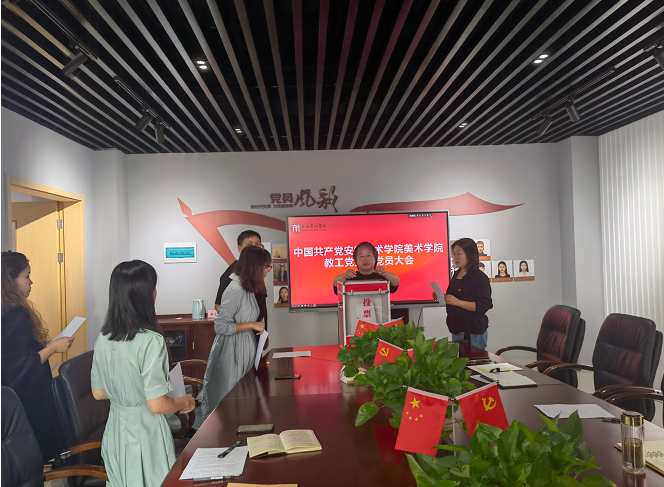 9月22日中午,美术学院教工党支部换届选举大会在美术楼会议室顺利召开,刘庆、陈元昊、江晓骐、罗守俊、黄永飞当选为新一届支部委员会委员,党员大会结束后,新一届支部委员会召开第一次会议,选举黄永飞为支部书记,刘庆为支部副书记,会议讨论了新一届委员职责和分工。