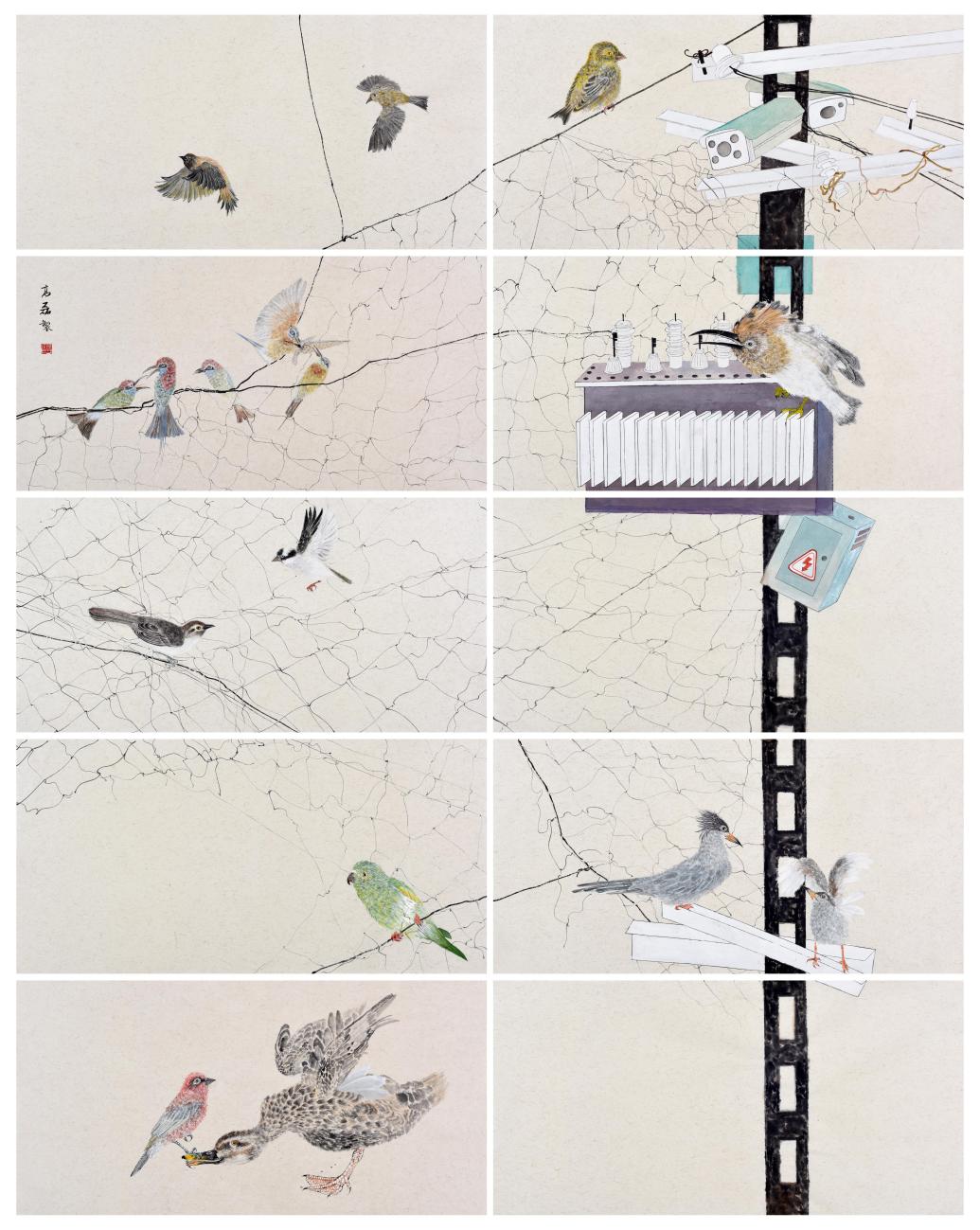 《雀抟生栖图》190×140cm 高磊