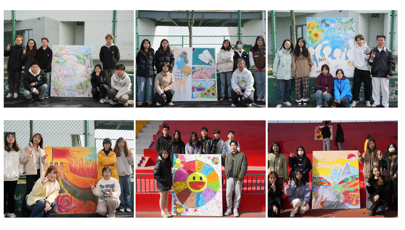 活动的第一阶段,同学们通过互动游戏的比拼获得绘画道具,在画布上大胆创作,描绘青春色彩。 第二阶段以展示加动员的方式邀请全校师生共同创作情绪心理画,通过笔绘释放情绪,放松心情。