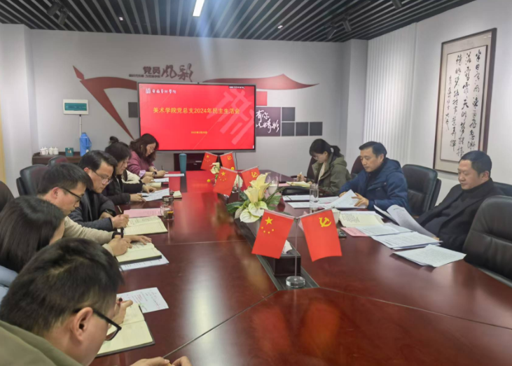 2 月 20 日下午,美术学院党总支召开 2024 年度民主生活会。校党委委员、副校长陈林与校督导组成员出席指导,会议由美术学院党总支书记陈明海主持。