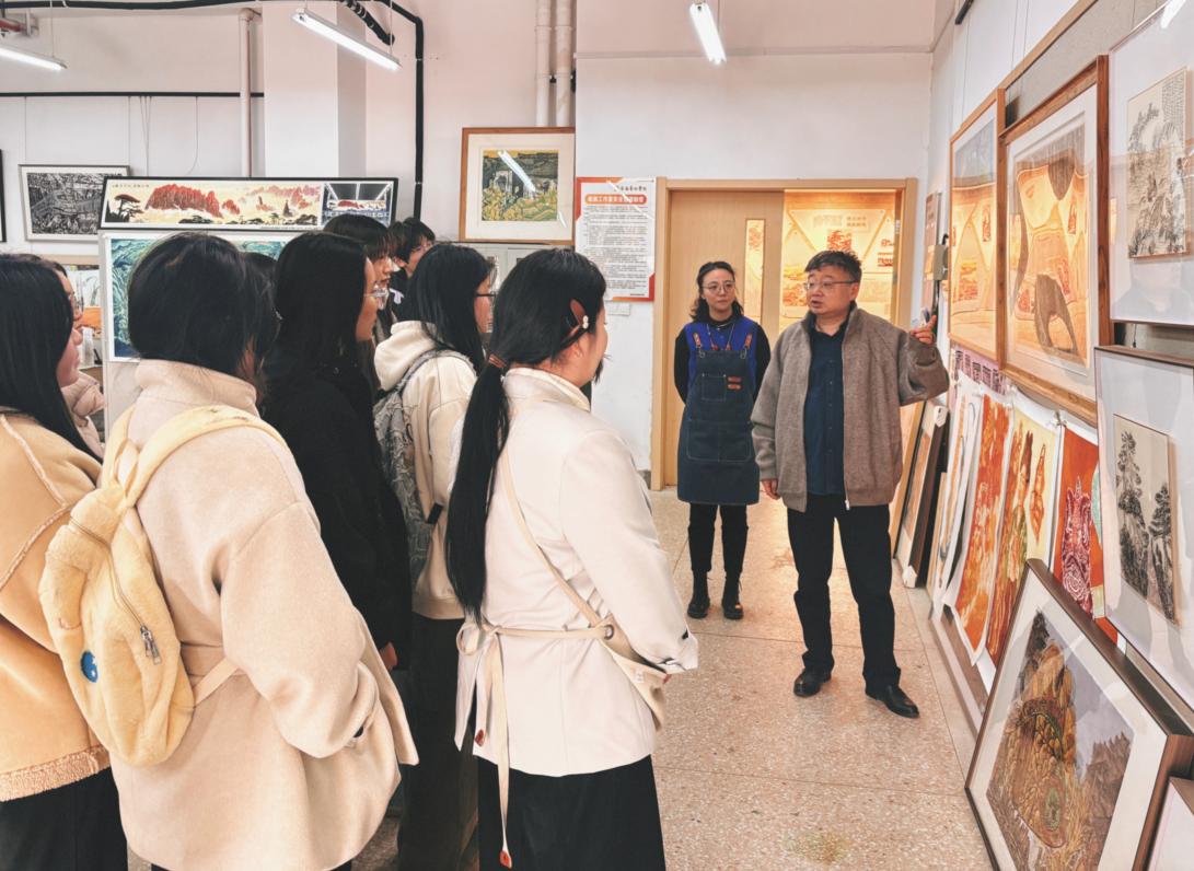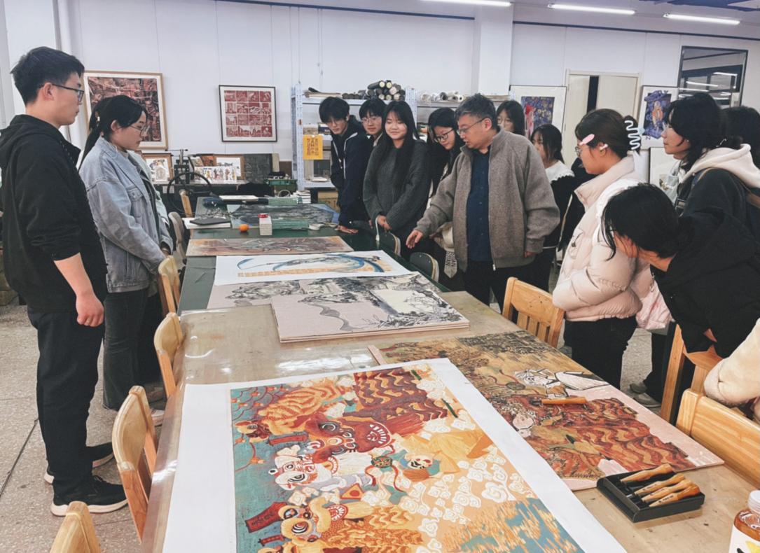 2025年3月11日下午,安徽艺术学院客座教授、中国美术家协会理事、安徽省美术家协会副主席、版画艺委会主任师晶,莅临美术学院版画工作室指导工作。师晶教授细致点评了每位毕业生的版画作品,从构图形式到主题内容都给予了专业指导。面对2024级版画方向的新生,师晶殷切寄语,勉励同学们勇担新时代艺术使命,积极投身创作实践,为新徽派版画艺术的传承与创新贡献青春力量。师晶平易近人的态度与高屋建瓴的指导,令在场学子如沐春风,备受鼓舞。