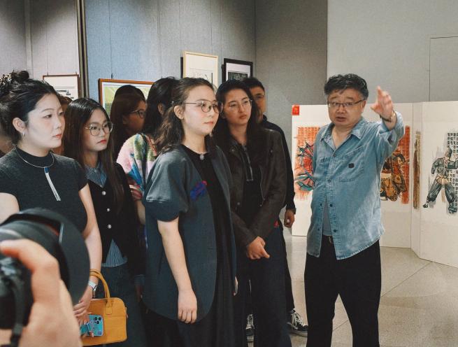 开展当天,我院版画方向师生赴现场观摩学习。观展前,安徽省版画艺术委员会主任、我校客座教授师晶先生首先介绍了本次展览的整体情况。随后,我院教师张婷婷对部分作品进行了专业导赏。在互动环节中,部分参展艺术家们从创作理念、技法运用、情感表达等维度,深入解读了自己作品背后的艺术思考,与我院师生围绕主题性版画的创作实践展开了交流与分享,通过思想碰撞进一步拓展了艺术视野。