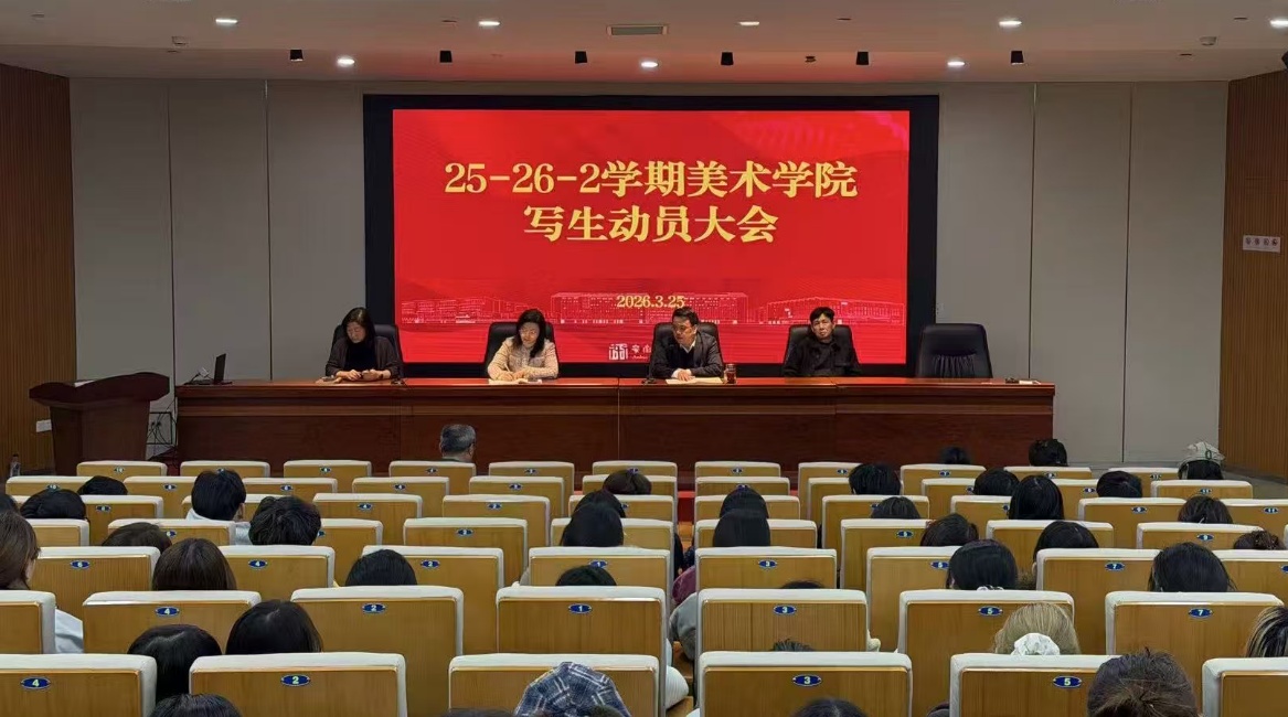 2026年3月25日中午,美术学院在美术楼报告厅召开2025—2026学年第二学期写生动员大会。美术学院党总支书记陈明海、副书记陈伟伟、副院长李李、吴晗华,本次写生课程的指导老师、辅导员及全体学生参加会议。大会由李李主持。