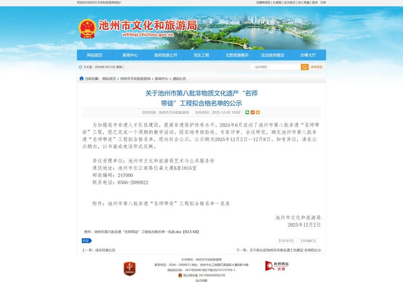 我校非遗保护专业学子成功入选池州市第八批非遗“名师带徒”工程