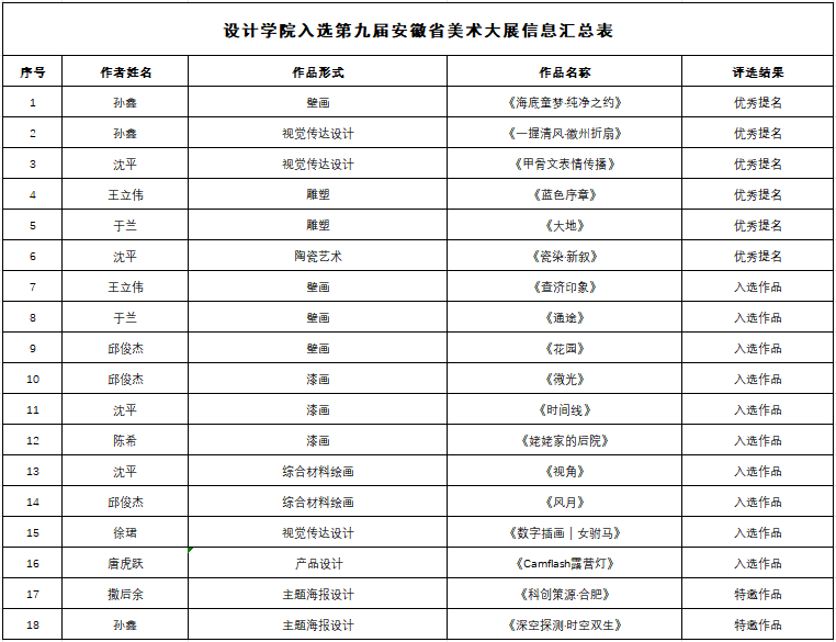 设计学院在第九届安徽省美术大展中斩获佳绩