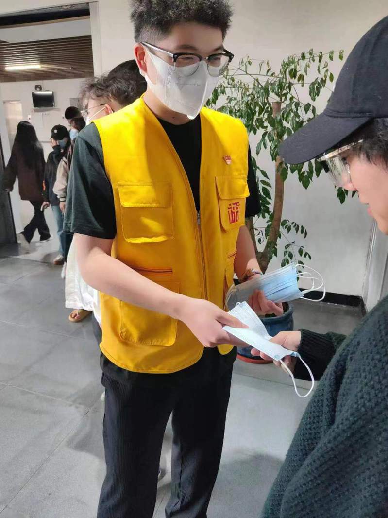 10月15日,学校核酸检测现场,来自设计学院的党员学生身穿“黄马甲”,帮助现场工作人员维护核酸检测秩序。志愿者们主动热情,认真履行职责,同时对需要帮助的同学,提供力所能及的服务和帮助。
