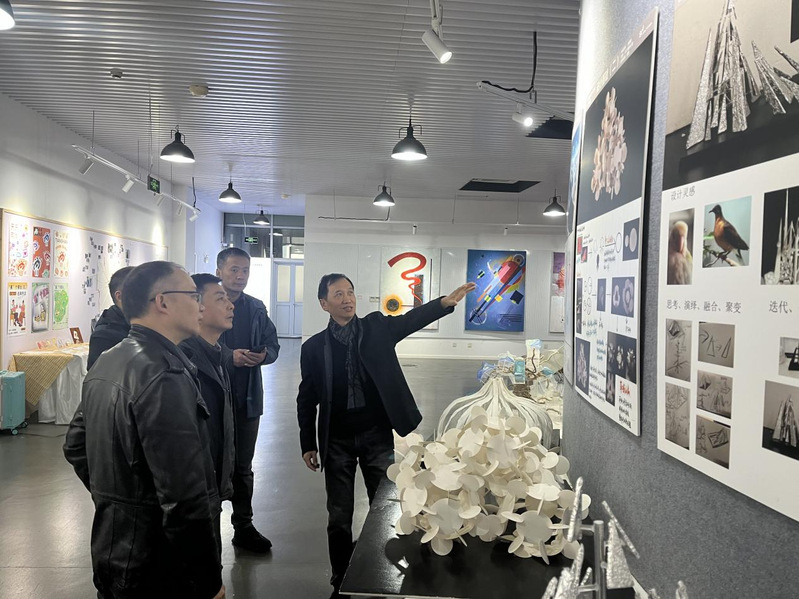 调研活动在上海视觉艺术学院校长助理易宇的全程陪同下进行。安徽艺术学院设计学院的访问团,先后参观了环境设计、产品设计、视觉传达设计、文物保护与修复、艺术与科技专业的教学成果,并在各专业负责人的详细介绍下,领略了各专业在教学创新、实践项目及学生作品方面的亮点。