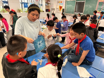 为弘扬中华优秀传统文化,培育非遗传承新生力量,构建文化育人共同体,4月24日下午,我校“非遗进校园系列活动”之非遗蓝染技艺体验课在合肥市习友路小学成功举办。通过沉浸式蓝染体验,让小学生们近距离感受到了非遗技艺的魅力。