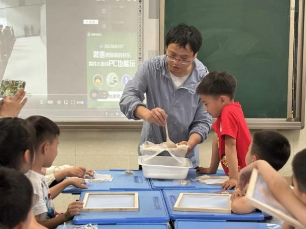 5月12日,安徽艺术学院非遗保护专业教研室携手合肥市长江路第二小学橡树湾校区,共同开展“非遗进校园”系列活动之“纸上生花——造纸术体验”。活动通过知识讲解与动手实践相结合的方式,带领50余名小学生探寻造纸术千年奥秘,播撒非遗传承种子。
