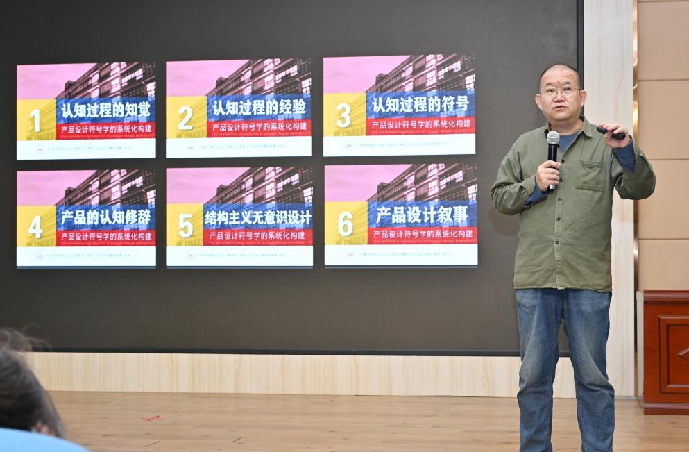 2025年10月23日,安徽艺术学院设计学院在音乐楼报告厅举办“设计方法与课题实践”专题学术讲座,活动由学院顾问邬烈炎教授主持,广州美术学院工业设计学院张剑教授主讲,通过无偿赠书、主题讲座、教师座谈会三项内容,带来了兼具深度与实践价值的设计教育分享。