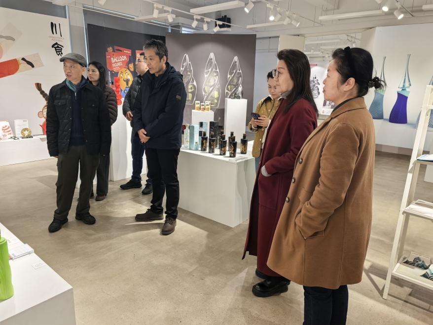 在上海视觉艺术学院未来设计学院,考察组深入了解其专业融合发展实践,重点学习了该校打破专业壁垒、推进跨学科课程共建,将叙事能力、创意方法与AI工具应用融入教学全过程的经验,以及校企共建工作室、嵌入产业项目的实训模式,该模式为学生搭建了从创意到落地的完整实践平台。
