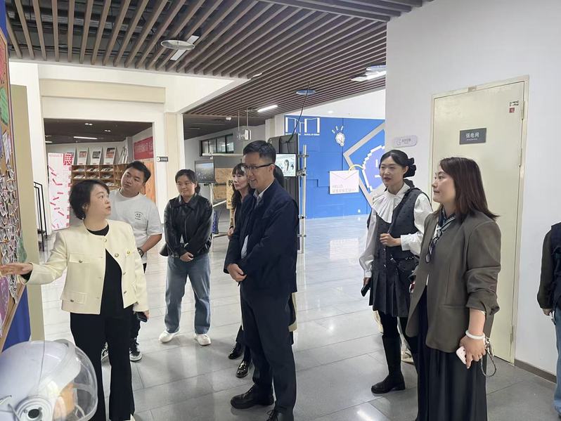 新华书店一行首先实地参观校园环境,调研设计学院专业成果展厅、教学实训场地,详细了解学院党建工作、专业建设、人才培养及艺术创作成果,沉浸式感受校园艺术氛围与育人特色。随后,双方在会议室开展座谈交流。设计学院展示了近年来专业建设成果,并围绕文化创意服务落地合作的方向进行探讨。新华书店党委第三党支部介绍了新华书店的发展历程、红色文化底蕴以及党建引领宣传思想阵地建设的经验做法。双方一致认为,新华书店作为党在宣传思想战线的主阵地和重要力量,红色基因深厚,党建工作基础扎实;我校艺术设计教育与文化传播服务天然契合、优势互补,以党建共建为纽带,能够实现资源共享、优势互补、协同育人、双向赋能。