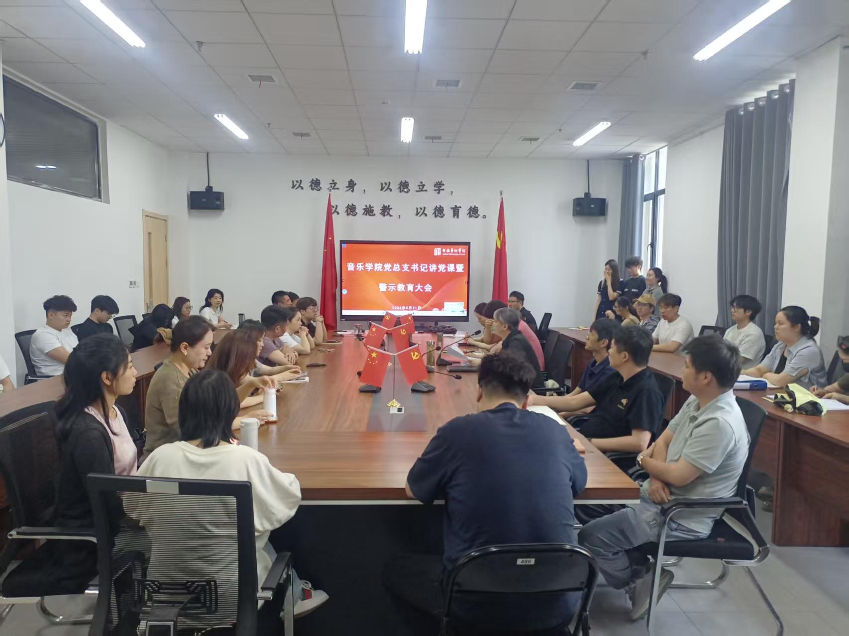 5月21日,音乐学院在音乐南楼104会议室召开党总支书记讲党课暨警示教育大会。音乐学院党总支书记李伟以“深入贯彻中央八项规定精神”为主题,为全体师生党员讲授了一堂内涵深刻的主题教育专题党课。