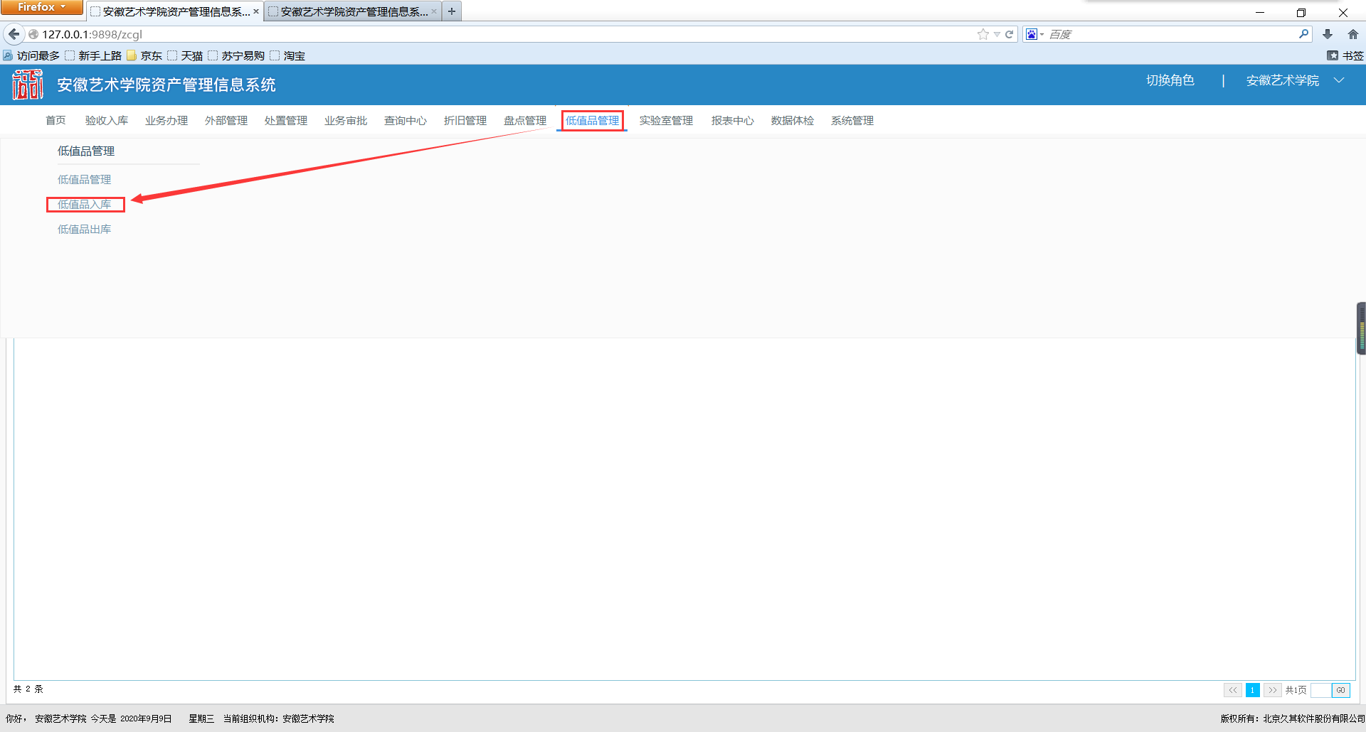 进入【低值品管理】