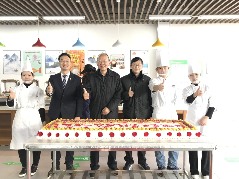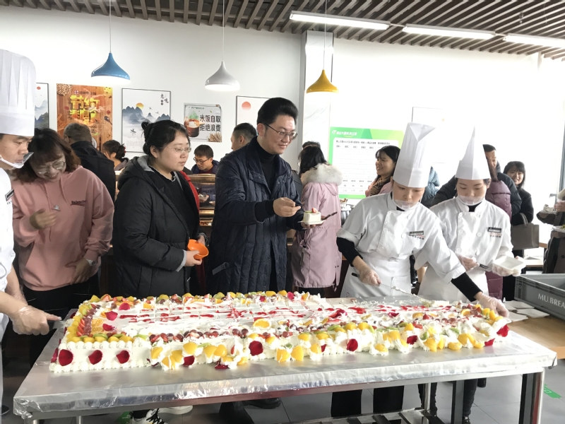 总务处组织食堂特制超长蛋糕为学院庆生