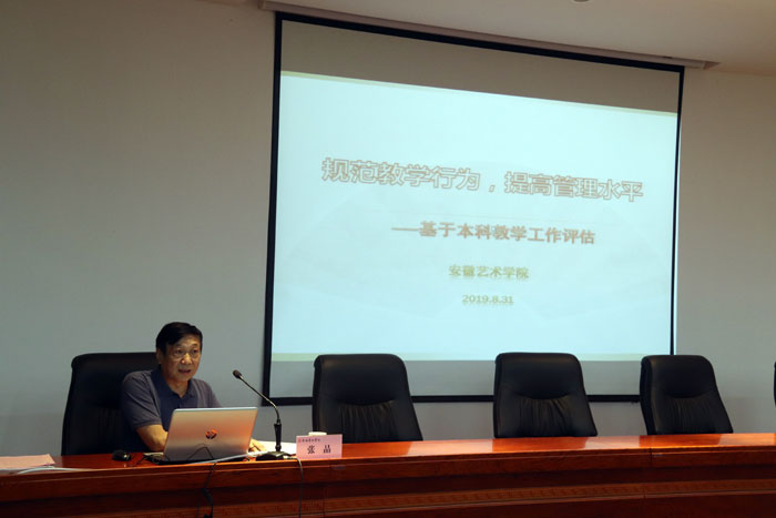 张晶作了题为《规范教学行为,提高管理水平》的专题讲座,从微观层面介绍了如何按照合格评估的要求开展安徽艺术学院的教学建设工作。张晶指出,新建高校合格评估重点有两点,即教育教学水平和教学管理水平。我们要着力提升教师的专业水平与教学能力方法,加强师德教育,完善教学管理的各个环节,以合格评估的标准开展教学管理工作。