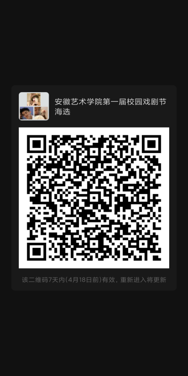参演团队请及时加入主题校园戏剧节微信群,并将《安徽艺术学院主题校园戏剧节报名表》(见附件)于4月21日中午12:00发送给主办方。
