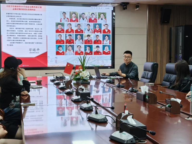 会前,参会师生共同学习了习近平总书记给阿图什市哈拉峻乡谢依特小学戍边支教西部计划志愿者服务队全体队员的回信。会上,曹宇结合自身2018年参加西部计划志愿服务经历,围绕什么是西部计划、如何参加西部计划等方面展开详细介绍。在互动交流环节,同学们分别就西部计划的报名流程、服务岗位、生活保障等问题进行咨询,现场气氛热烈。