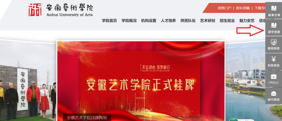 1打开学院官方网站,点击页面右边状态栏的“数字资源”版块即可跳转。