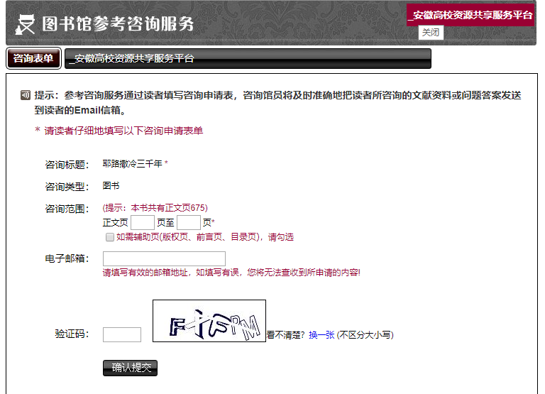 如在使用过程中遇到问题,请直接与图书信息中心联系,电话:0551-64400280