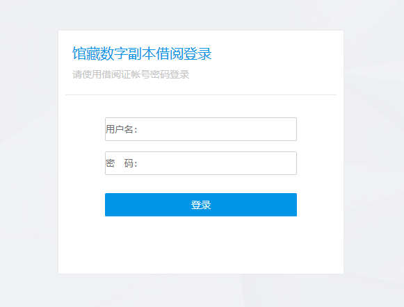 通过点击“馆藏借阅”按钮或试读页面上方的“借阅”按钮,进入借阅登录界面,输入学工号和密码(身份证后6位)进行登录。