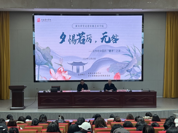 12月19日下午,“新安讲堂走进安徽艺术学院”系列主题活动第二期在综合楼报告厅开讲。安徽大学青年思想研究中心主任、安徽省学校共青团研究中心常务副主任、安徽大学团委书记高贵和作《夕惕若厉,无咎——谈传统中国的“君子”之道》专题讲座。图书与信息中心副主任鲍建军主持。