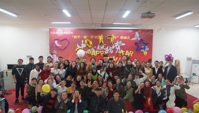 最后,本场演员上台与4位主持人一起演唱《相亲相爱》,而台下的同学与老师们也和他们一起高声演唱互动,台下台上同唱一首歌,气氛欢乐而温馨。孙来法主任给大家送来了新年的祝福,“2017我们来了——元旦晚会”在欢乐、青春、团结、温馨的氛围中,落下了帷幕。(文/潘捷 图/马帅)