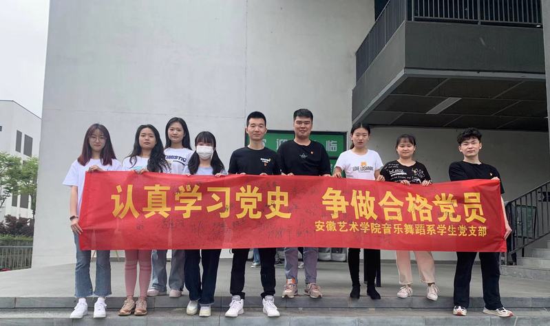 为庆祝中国共产党建党100周年和深入推进党史学习,2021年5月7日音乐学院与舞蹈学院学生党支部第一党小组开展了“认真学习党史,争做合格党员”承诺签名活动,鼓励在校师生一同参加,通过签名的行动激励自己经后不断深入学习党史,并将其内化于心、外化于行,从行动上争做合格党员。