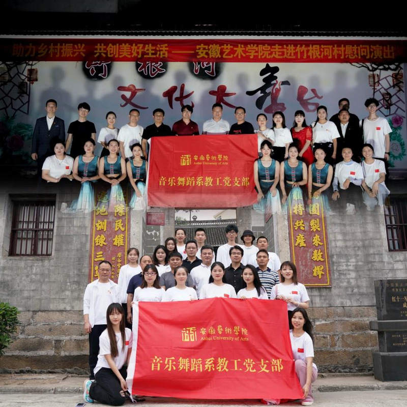 座谈会后,由安徽艺术学院和竹根河村共同打造的“助力乡村振兴,共创美好生活”的慰问演出正式开始。演出汇聚舞蹈、演唱、竹笛等多种形式,异彩纷呈,展现了我校音乐舞蹈系师生和竹根河村民的精神风貌。