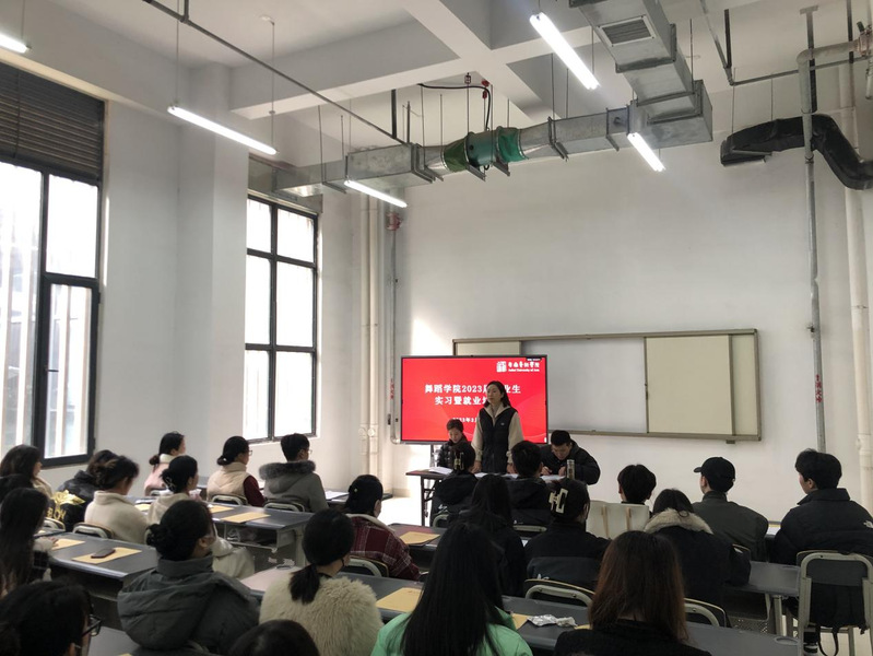 会议首先对今年的毕业班专业实习工作进行动员和布置,对专业实习的具体要求和实习的细节进行强调,对学生实习期间的管理做要求,规范专业实习流程,切实提高专业实习效果,稳步推进就业工作。学院领导指出本次毕业生实习暨就业培训工作意义重大,具有开创性和指导性的意义,为全体毕业生未来的规划提供了实质性的建议,会议最后,学院领导祝愿全体2023届毕业生实习安全、毕业顺利。(撰稿:吴艺璇 摄影:卢茜茜 初审:陈瑞东 审定:徐芳)