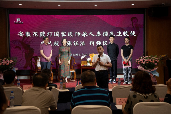 徒弟吴艺璇、张钰浩表达了对师父的仰慕、敬重和爱戴之情。他们表示,作为娄楼先生的弟子,将把传承、创新花鼓灯艺术视为毕生使命,竭尽所能、不负重托,为安徽花鼓灯艺术贡献微薄力量。