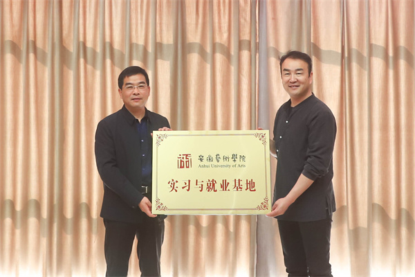 仪式上,双方分别介绍了各自单位的发展情况,就人才培养、学生实习就业以及开展校企合作等问题进行了广泛交流与探讨。随后,滁州演艺集团党委书记、总经理毛鸿冰与舞蹈学院党总支副书记徐芳共同签署实习与就业基地协议书,并对安徽艺术学院共建实习与就业基地表示欢迎和支持,希望以此次合作为契机,推动加大资源共享,推进深度融合。舞蹈学院院长戴虎为实习基地授牌。
