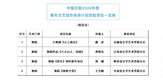 近日,我校舞蹈学院特聘院长戴虎成功获批2024年中国文联青年文艺创作扶持计划项目——小舞剧《云上璜尖》,该项目作为安徽文联唯一入选项目不仅是对我校教师学术研究和艺术创作方面的高度认可,同时也标志着我校在文化艺术创新方面取得突出成绩。