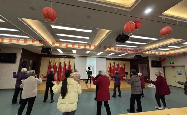 志愿者同老年公寓的老人们经过交流讨论后,确定适合他们强身健体的舞蹈种类和舞蹈作品,并在现场进行了专业展示和舞蹈教学。