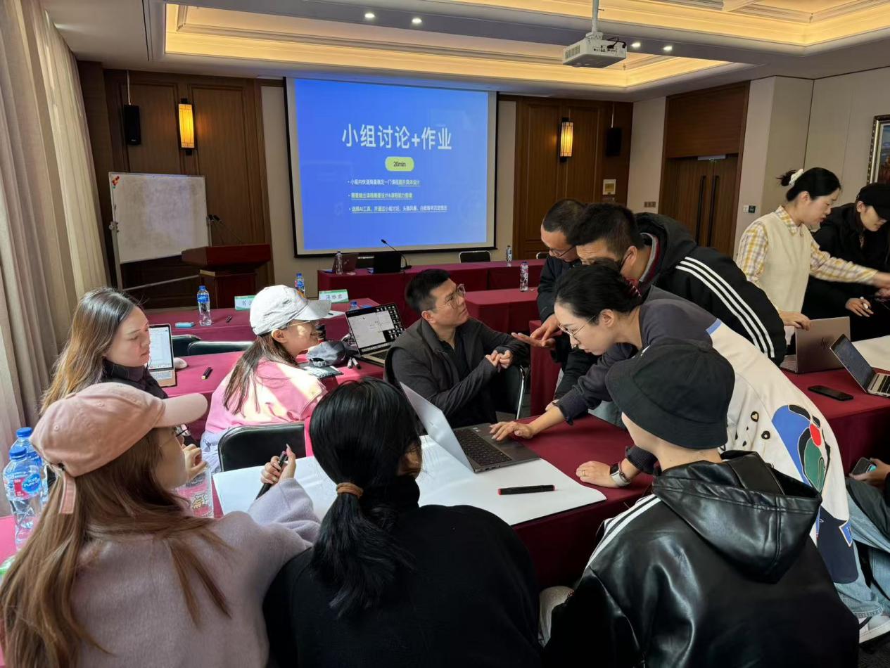 工作坊实践环节设置了AI辅助课程目标设定、问题图谱构建、知识图谱开发及教学场景应用四大环节。舞蹈学院教师通过分组演练、互动研讨和成果汇报,系统体验了AI技术在课程设计、教学互动及教学评价中的应用方法,为后续开展AI+舞蹈教学创新奠定了实践基础。