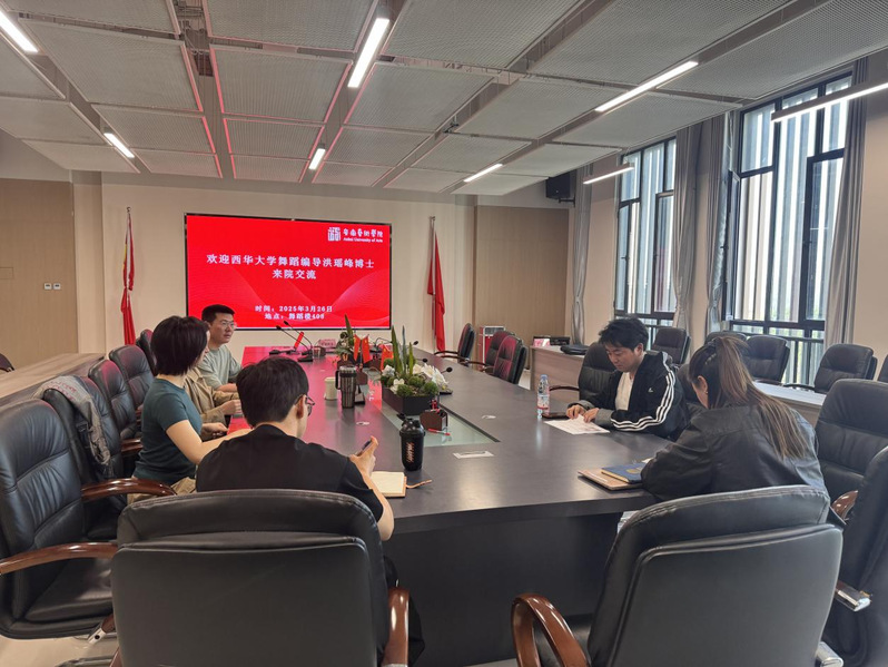 3月26日,西华大学舞蹈学院教师、舞蹈编导洪瑶峰博士应邀莅临安徽艺术学院舞蹈学院,与舞蹈编导、理论课程组教师开展学术交流研讨。舞蹈学院院长戴虎,舞蹈教研室主任陈萌,教科研办公室负责人时特及课程组教师出席本次会议。