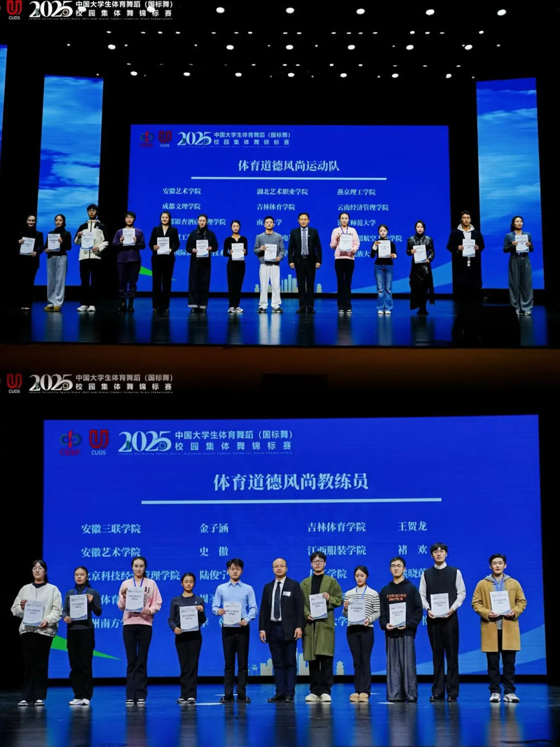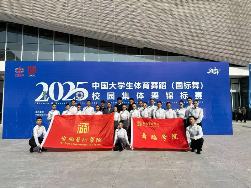 12月5日至7日,2025年中国大学生体育舞蹈(国标舞)校园集体舞锦标赛在四川成都举办,该赛事由中国学生体育联合会主办、成都体育学院承办,为全国大学生体育舞蹈重要赛事。本次比赛共有全国43所高校的785名运动员参赛,涵盖双一流、体育类、艺术类及高职高专院校,竞争激烈。安徽艺术学院舞蹈学院组织学子携原创作品参赛,取得了优异成绩。