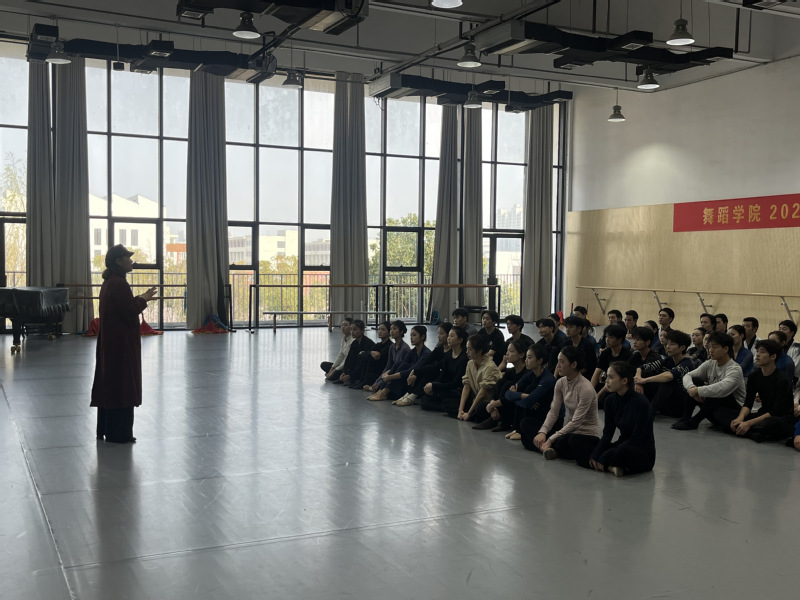3月21日,客座教授王泳舸对拟报送“桃李杯”的节目进行阶段性审查与指导。当日活动分为教师示范课展示、学生个人项目展演及集体项目汇报三个环节,王泳舸教授与舞蹈学院院长戴虎、副院长李玉煜及全体专业教师共同参与,围绕技术规范、艺术表现力与作品内涵展开深度研讨。