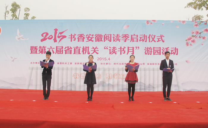 4月19日,由省委宣传部、省直机关工委、省新闻出版广电局主办的2015年“书香安徽阅读季”启动仪式暨第六届“省直机关读书月”游园活动在合肥渡江战役纪念馆广场隆重举行。省委常委、宣传部长、“书香安徽阅读季”活动组委会主任曹征海,省人大常委会副主任陈先森,省政协副主席李修松,国家新闻出版广电总局有关部门负责同志出席活动。