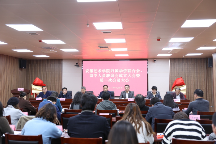12月10日下午,安徽艺术学院归国华侨联合会、留学人员联谊会成立大会暨第一次会员大会在综合楼717会议室隆重举行。省归国华侨联合会党组书记、主席李世蕴,省委教育工委组干处副处长王树龙,省侨联社会工作部(权益保障部) 部长陈茂先、一级主任科员周之龙,学校党委书记周明洁、党委副书记韩军出席会议。校党委委员、宣传部(统战部)部长吴孔铎主持会议。
