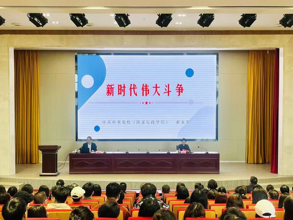 11月5日,学校在综合楼报告厅召开党委理论学习中心组(扩大)学习会,中央党校(国家行政学院)原副秘书长、教授郝永平应邀就“新时代伟大斗争”作专题辅导报告。校党委书记韩军主持会议并讲话。