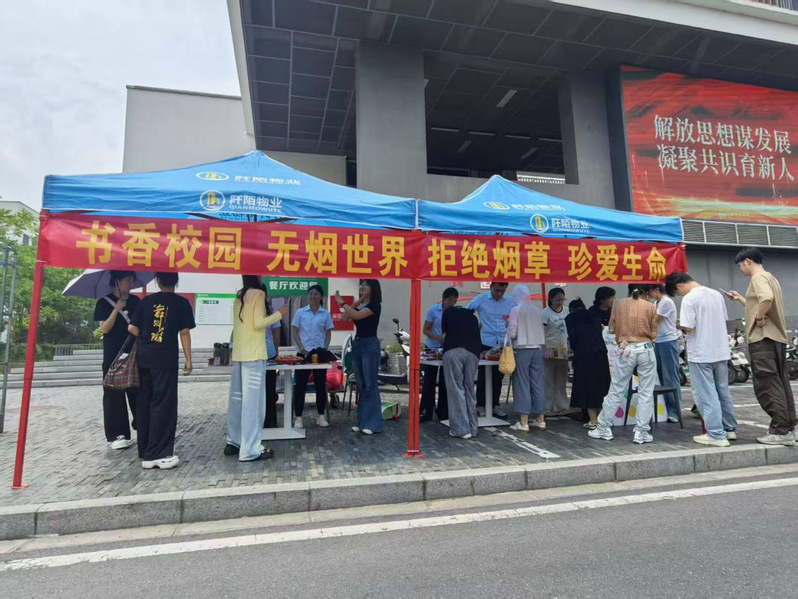 2025年5月20日,学校食堂东面举办了一场别开生面的禁烟活动。此次活动由后勤管理处、校团委、物业公司联合组织,旨在贯彻落实学校公共场所禁烟规定,保障师生健康,营造文明、绿色、安全的校园环境。