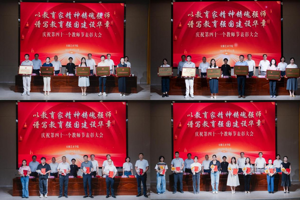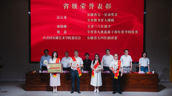 会上,对获得安徽省五一劳动奖章、全省教书育人楷模、全省三八红旗手、全省第九批选派干部考核优秀、全省五四红旗团委以及获得校级“优秀共产党员”“优秀党务工作者”“先进基层党组织”“管理服务育人示范岗”“师德先进个人”“最美教师”“优秀评议员”“青年艺术家”“靓英计划”“黄大年式教师团队”“优秀教研室”“优秀教研室主任”“最美辅导员”“最美学工集体”称号的先进个人和集体进行了表彰。