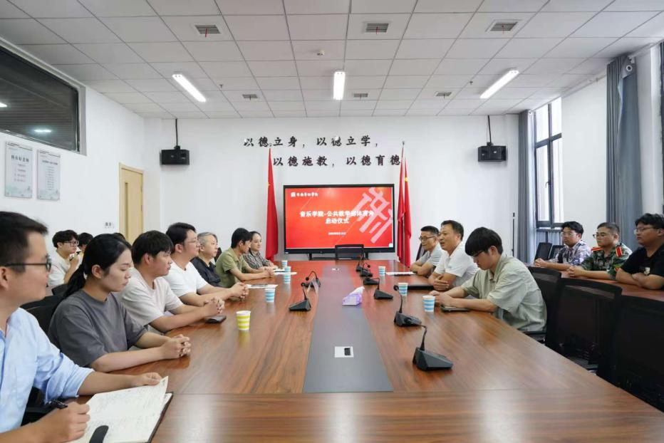 9月16日中午,在音乐学院104会议室举行音乐学院体育角启动仪式,活动以“健康第一、音体融合”为核心,强化体育育人功能,提升学生综合素养。公共教学部直属党支部书记、副主任张井水一行前来指导,音乐学院院长李伟及学院其他领导班子成员、师生代表出席启动仪式。