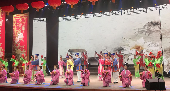 本场演出不仅是肥东县中小学戏曲社团老师同学们教学成果的展示,还荟萃了诸多黄梅戏、京剧名家,共同为现场观众带来了一场视听盛宴。演出最后,我院戏剧影视系的学生带来的黄梅戏联唱《黄梅飘香》为演出画上了完美的句号。(李新新)