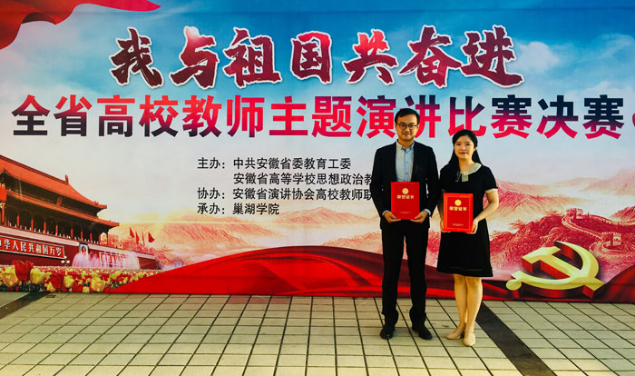 9月20日下午,全省高校教师“我与祖国共奋进”主题演讲比赛决赛在巢湖学院音乐报告厅举行。经校赛、全省预赛两轮选拔,新闻播音系陆璐、戏剧影视系郑军两位老师代表我校参加本次决赛,均荣获三等奖。